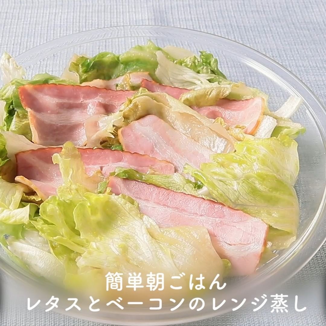 ⑤簡単朝ごはん レタスとベーコンのレンジ蒸し