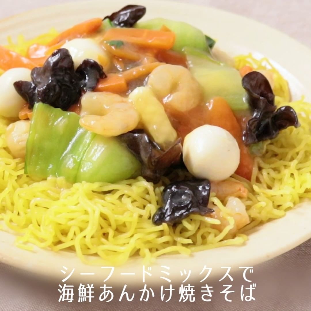 ⑤シーフードミックスで海鮮あんかけ焼きそば