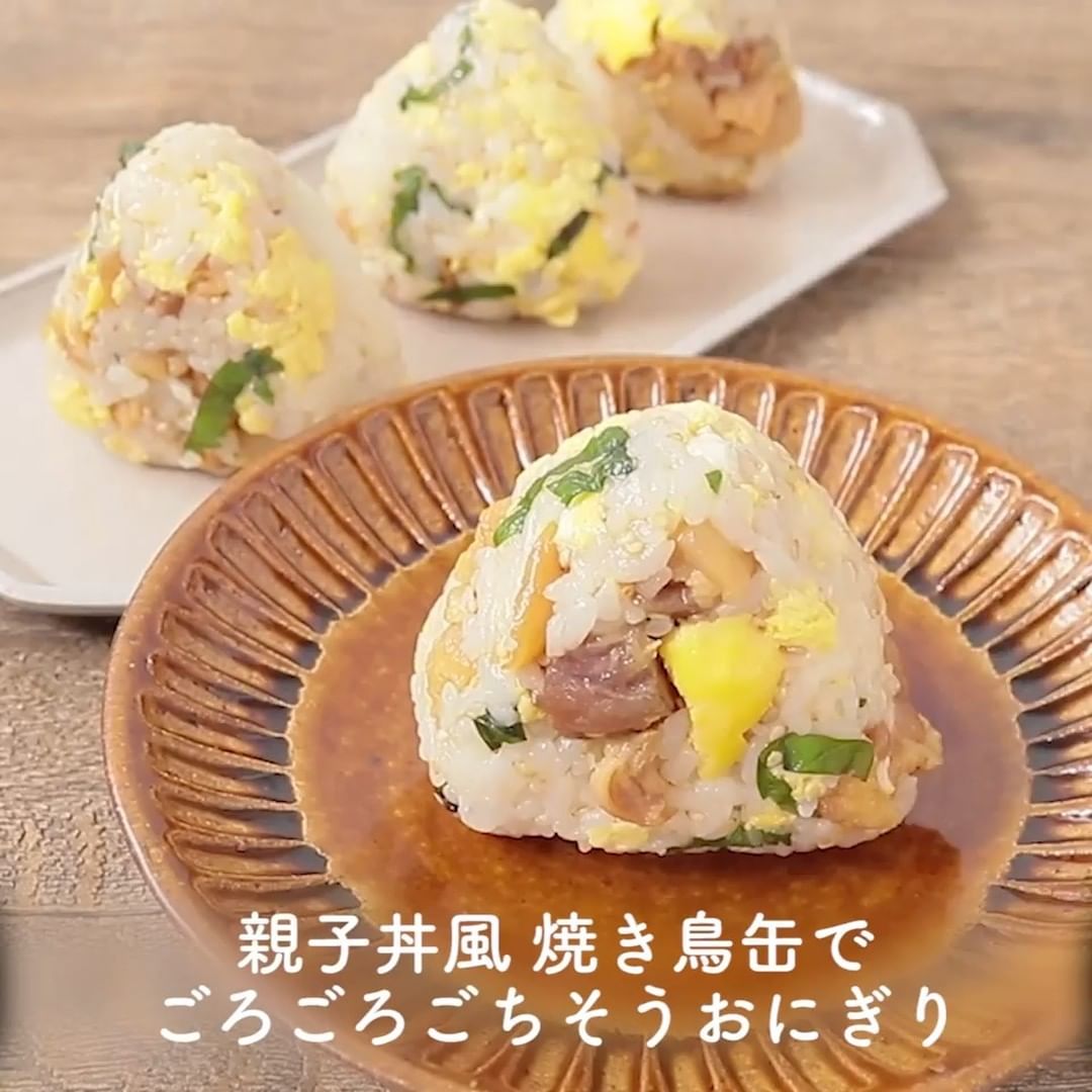 ①親子丼風 焼き鳥缶で ごろごろごちそうおにぎり
