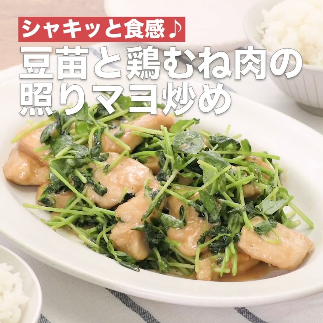 ⑤<シャキッと食感♪豆苗と鶏むね肉の照りマヨ炒め>