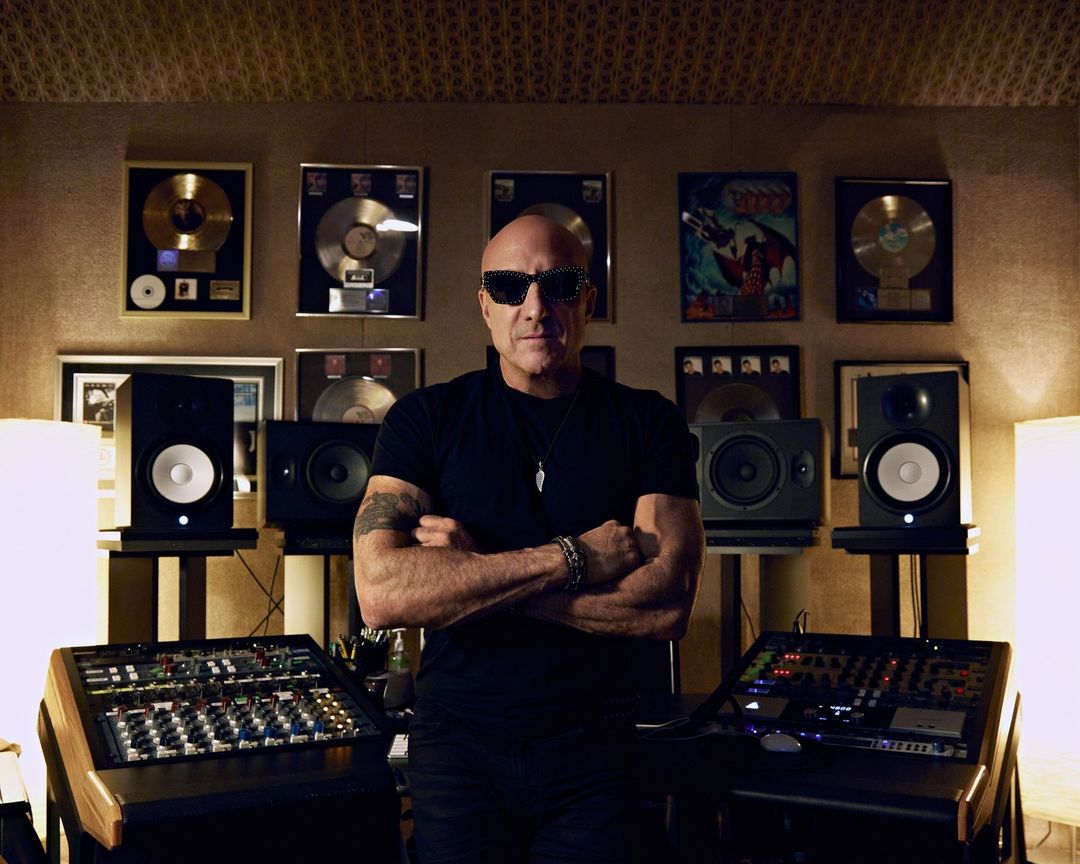 So when I went to see Kenny Aronoff at his recording studio, that was the only plan I had in mind. What Kenny has done over his decades-long career has been mind-blowing and as a teen, I was a huge fan of one of his famous drum solos. So to have this legend in front of my Canon EOS R5 was ridiculously cool! The thing I value most as a portrait photographer is the doors that have opened and the interesting people I get to capture. After shooting Kenny playing a bit, we went into another room where he had a few of his platinum and gold records on the walls and I snapped this beauty using only the ambient light that was in the room.”
