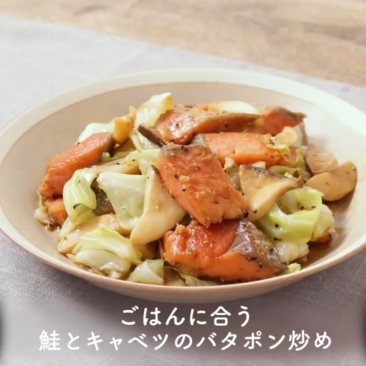 ③ごはんに合う 鮭とキャベツのバタポン炒め
