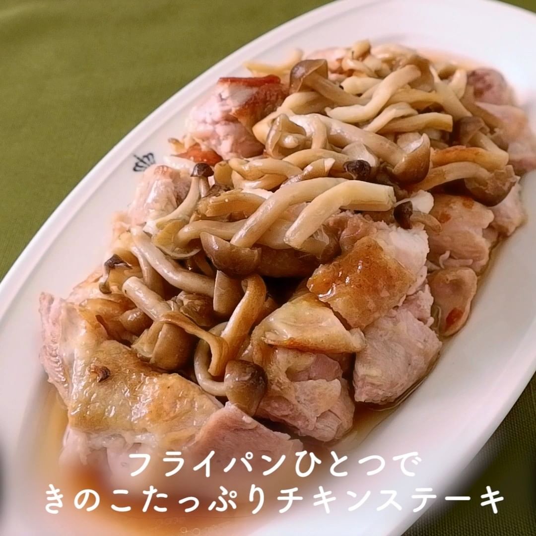 ⑤フライパンひとつで きのこたっぷりチキンステーキ