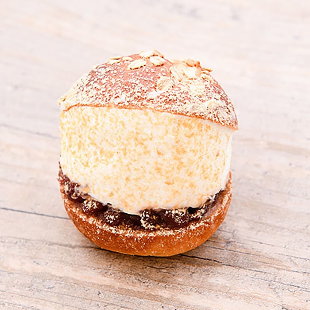 写真⑤マリトッツォのような可愛らしい見た目の「北海道あずきと自家製サワーホイップ」。 あんこうは程よい甘さで、サワー系のクリームと相まってさっぱり楽しめる。