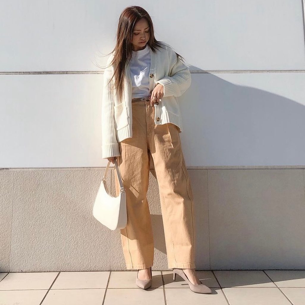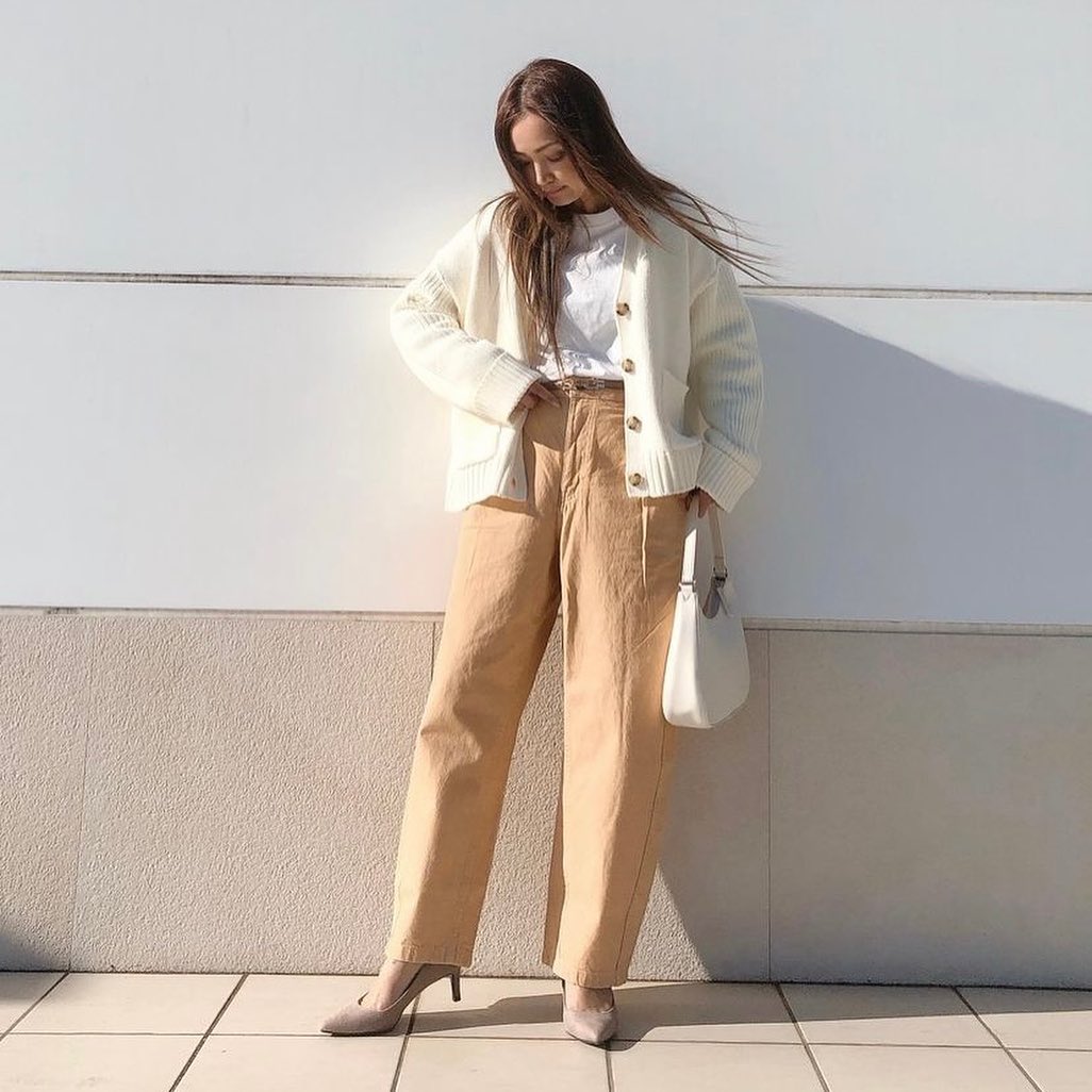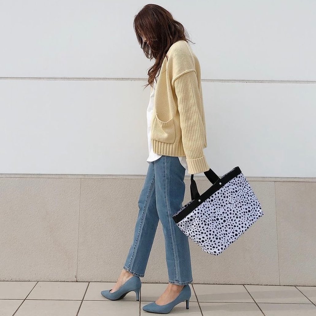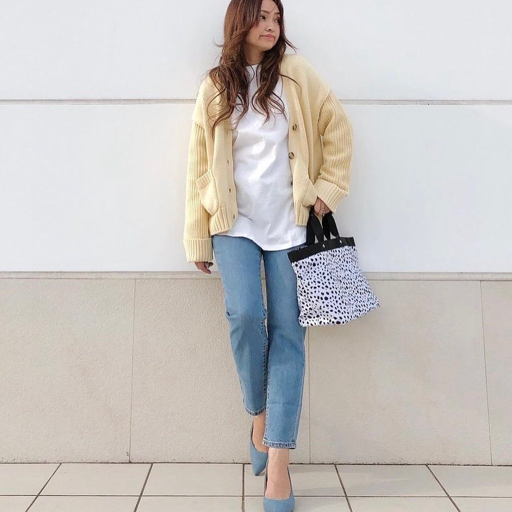 トレンドのイエローは、羽織るで華やかな春コーデに。