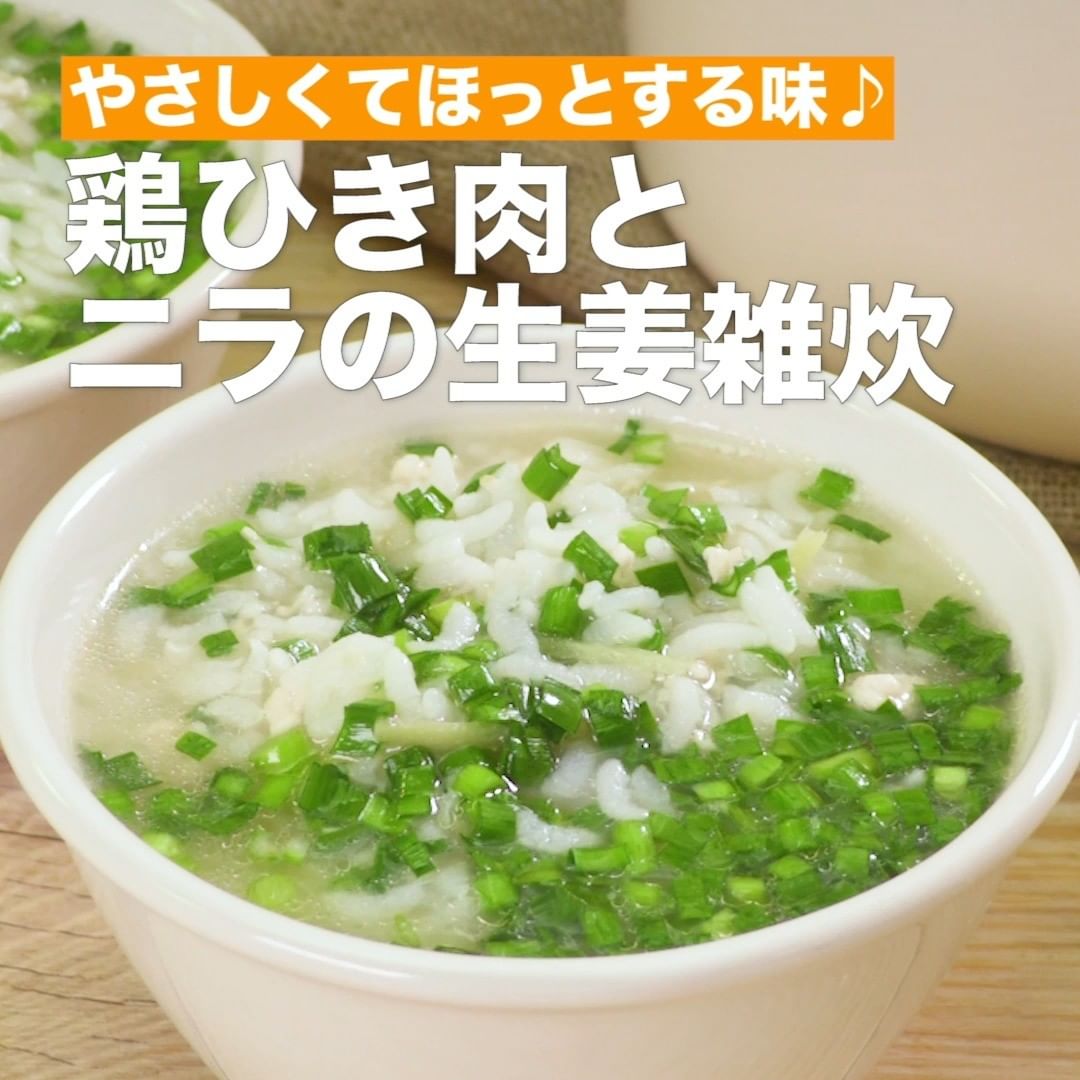 ②<やさしくてほっとする味♪鶏ひきとニラの生姜雑炊>