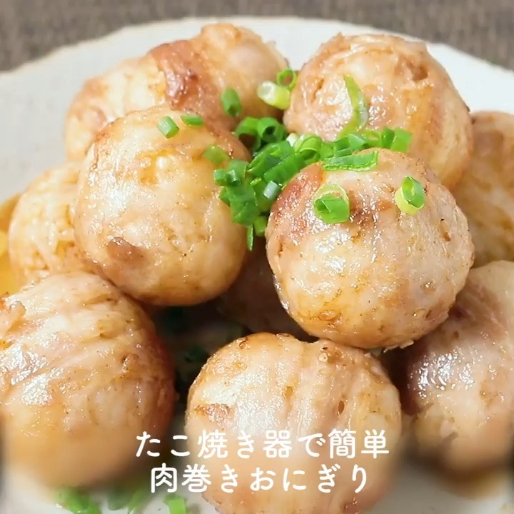 ③たこ焼き器で簡単 肉巻きおにぎり