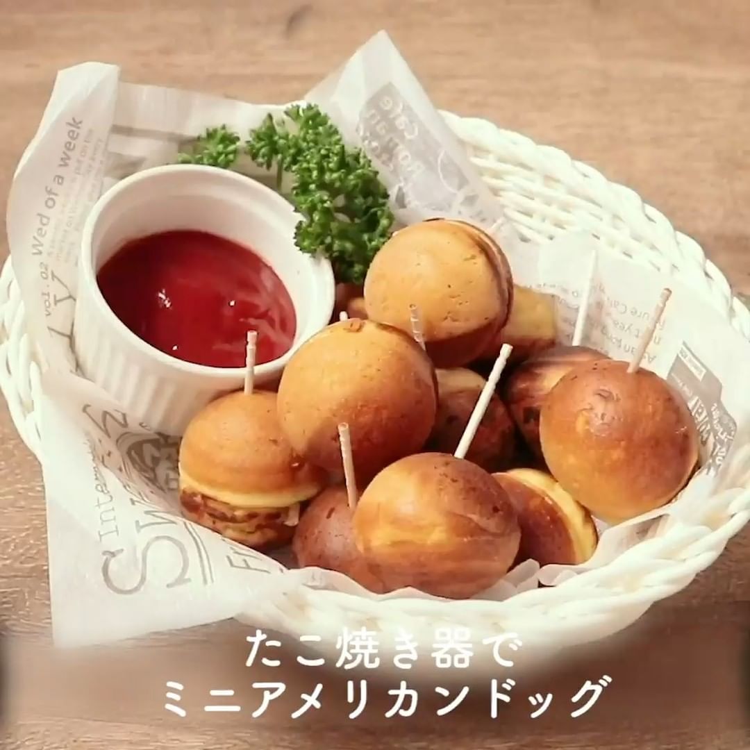 ⑤たこ焼き器でミニアメリカンドッグ