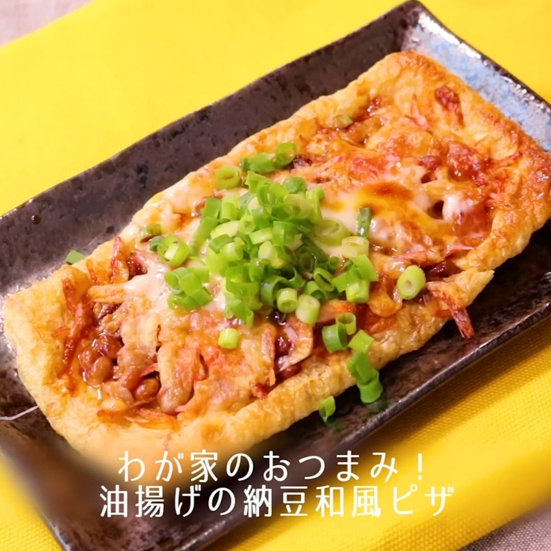 ③わが家のおつまみ!油揚げの納豆和風ピザ