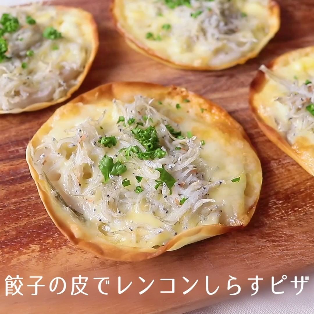 ④餃子の皮でレンコンしらすピザ