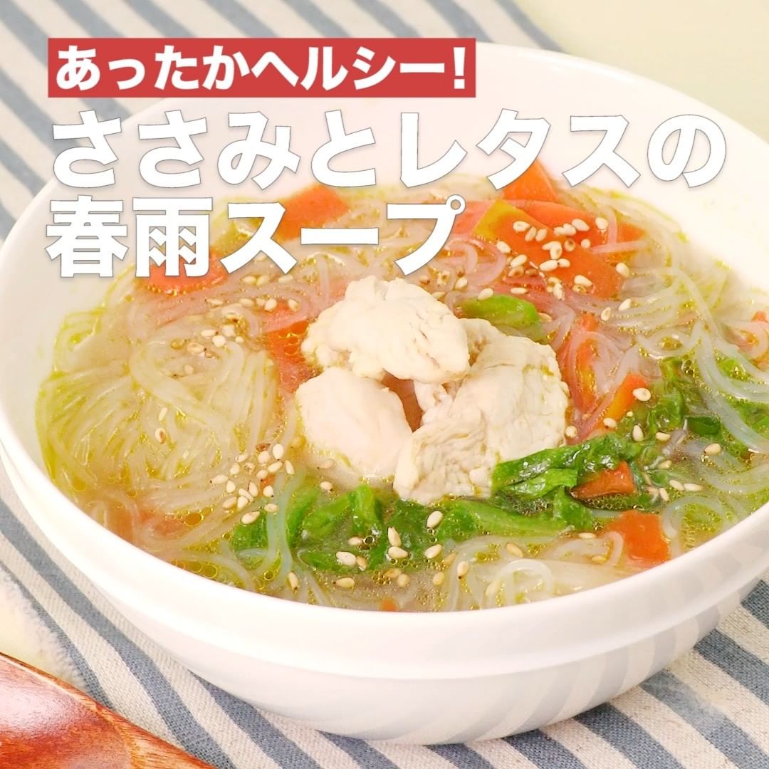 ほっと一息あったまる!ささみとレタスの春雨スープ♪