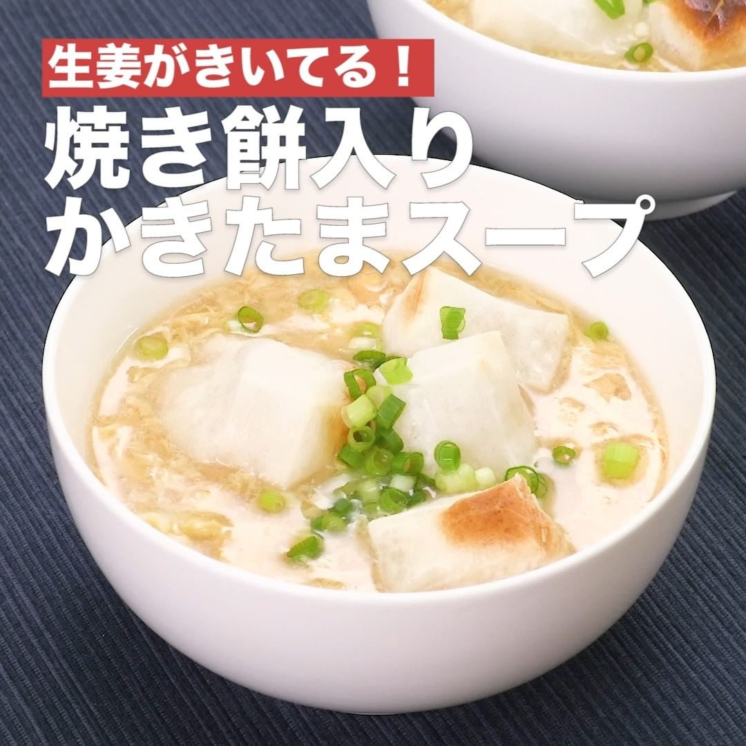 ⑦<生姜がきいてる!焼き餅入りかきたまスープ>