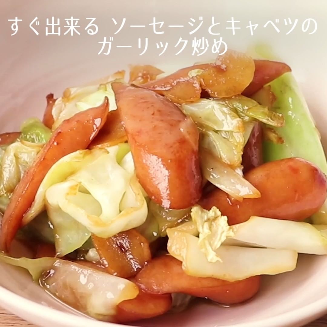 ①すぐ出来る ソーセージとキャベツのガーリック炒め