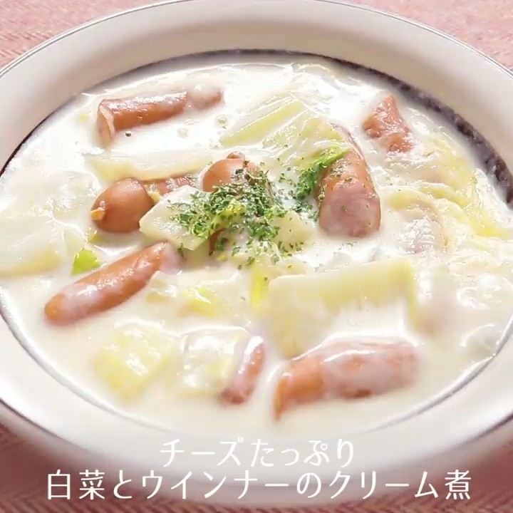③チーズたっぷり白菜とウインナーのクリーム煮