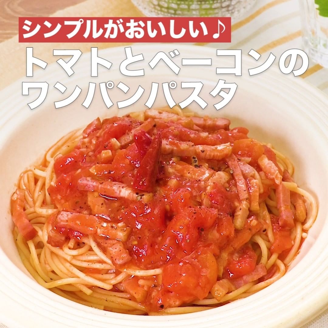 ②<シンプルがおいしい♪トマトとベーコンのワンパンパスタ>