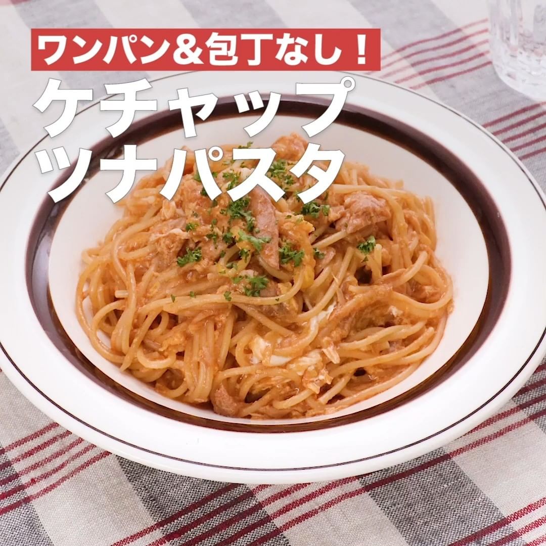 ③<ワンパン&包丁なし!ケチャップツナパスタ>
