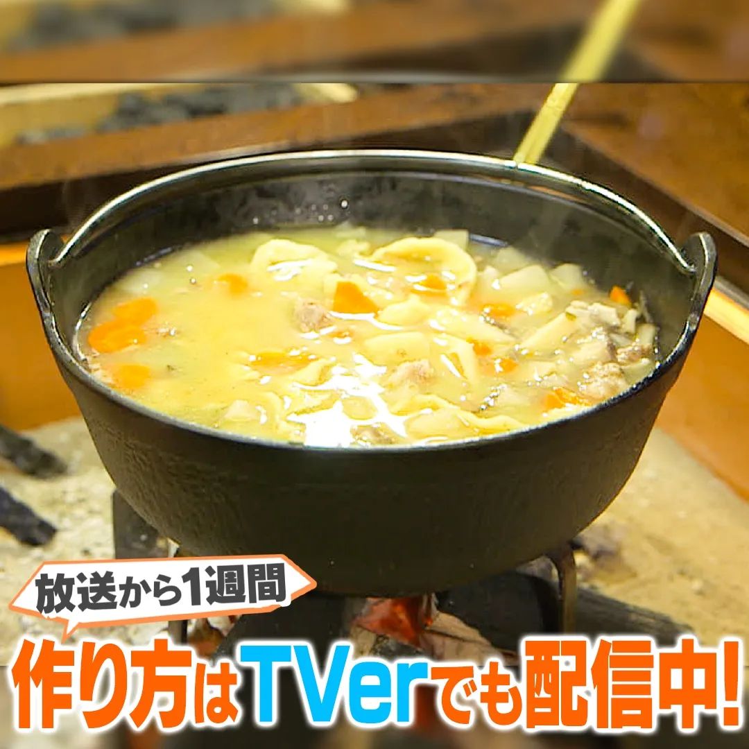 ⑦寝かせていただんごを伸ばしながら鍋に入れ15分ほど煮て、味噌をおたま1杯分程溶かしたら完成!