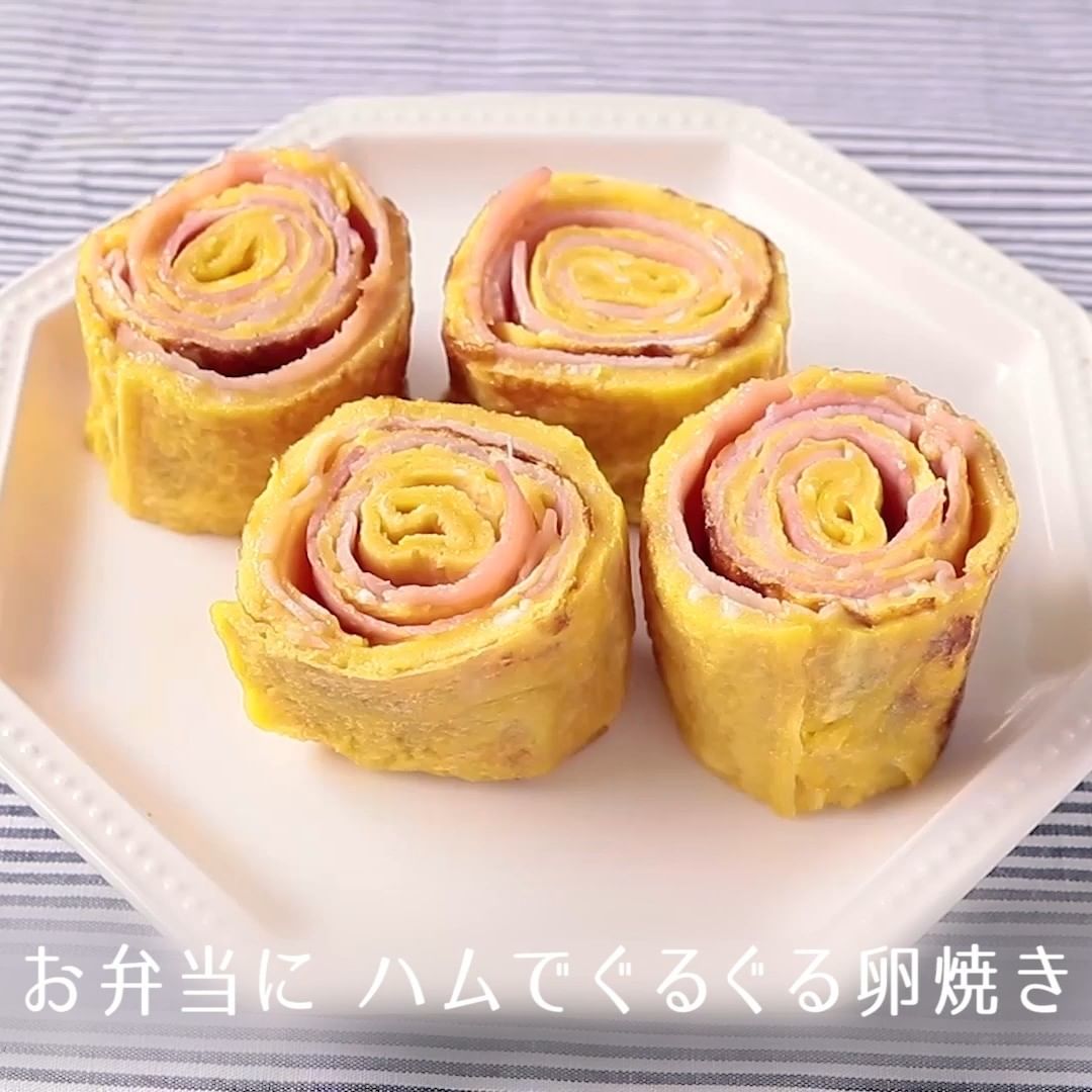 ⑤お弁当に ハムでぐるぐる卵焼き