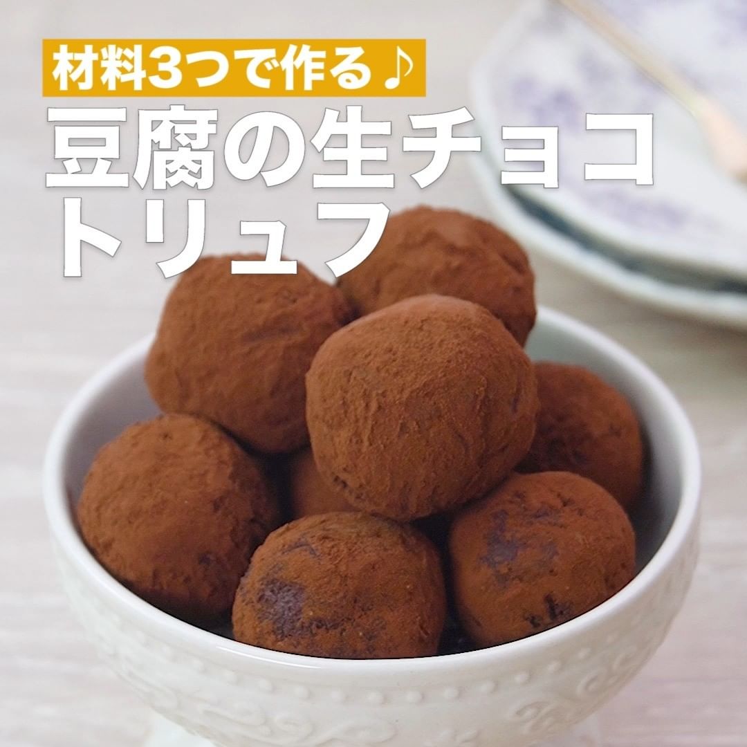 ①<材料3つで作る♪豆腐の生チョコトリュフ>