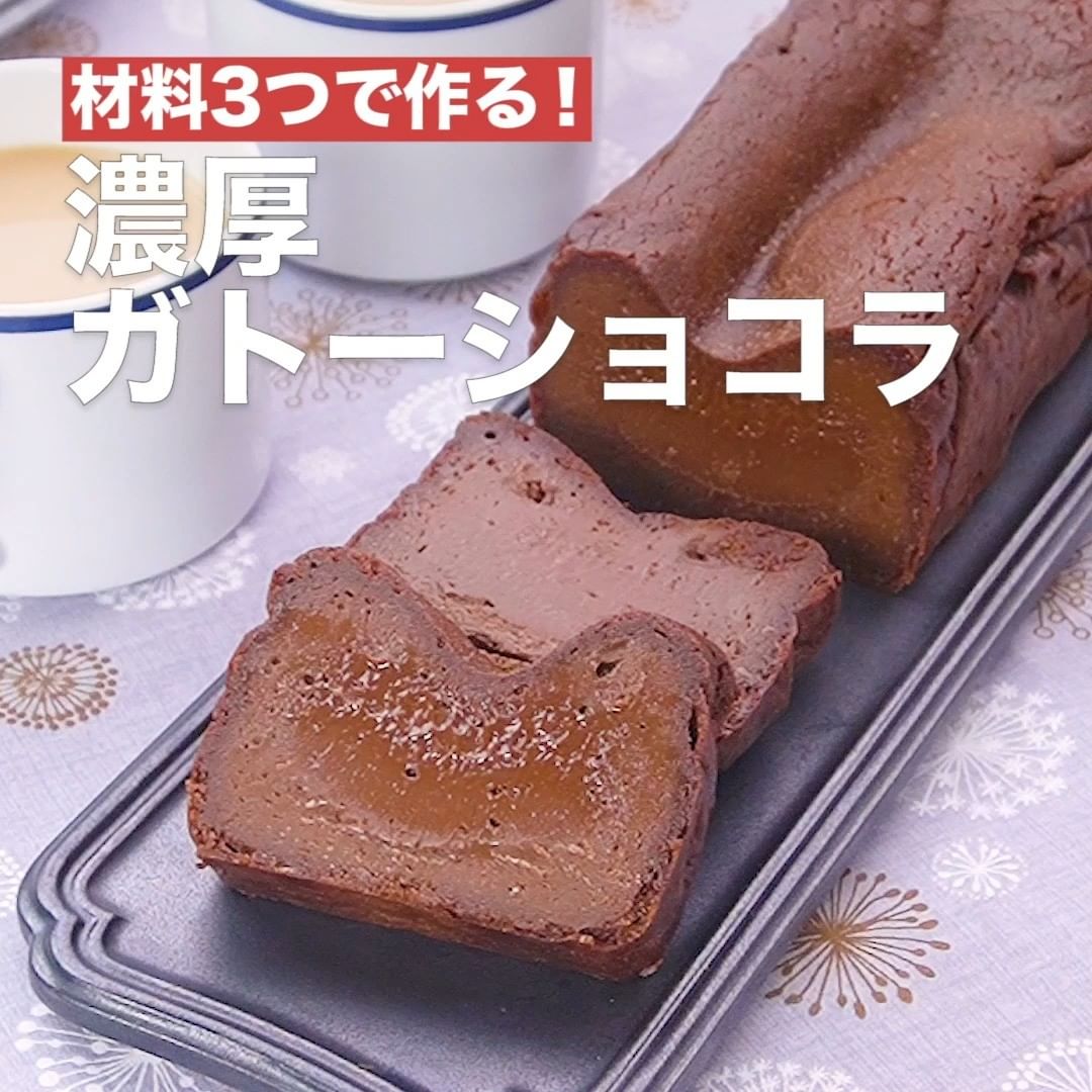 生チョコのようなしっとり感が楽しめる濃厚な味わいのガトーショコラのご紹介です。少ない材料で簡単仕上げ♪混ぜて焼くだけです!チョコレートだけの甘味で仕上げるのでお好みのチョコレートを使ってみて下さい♪