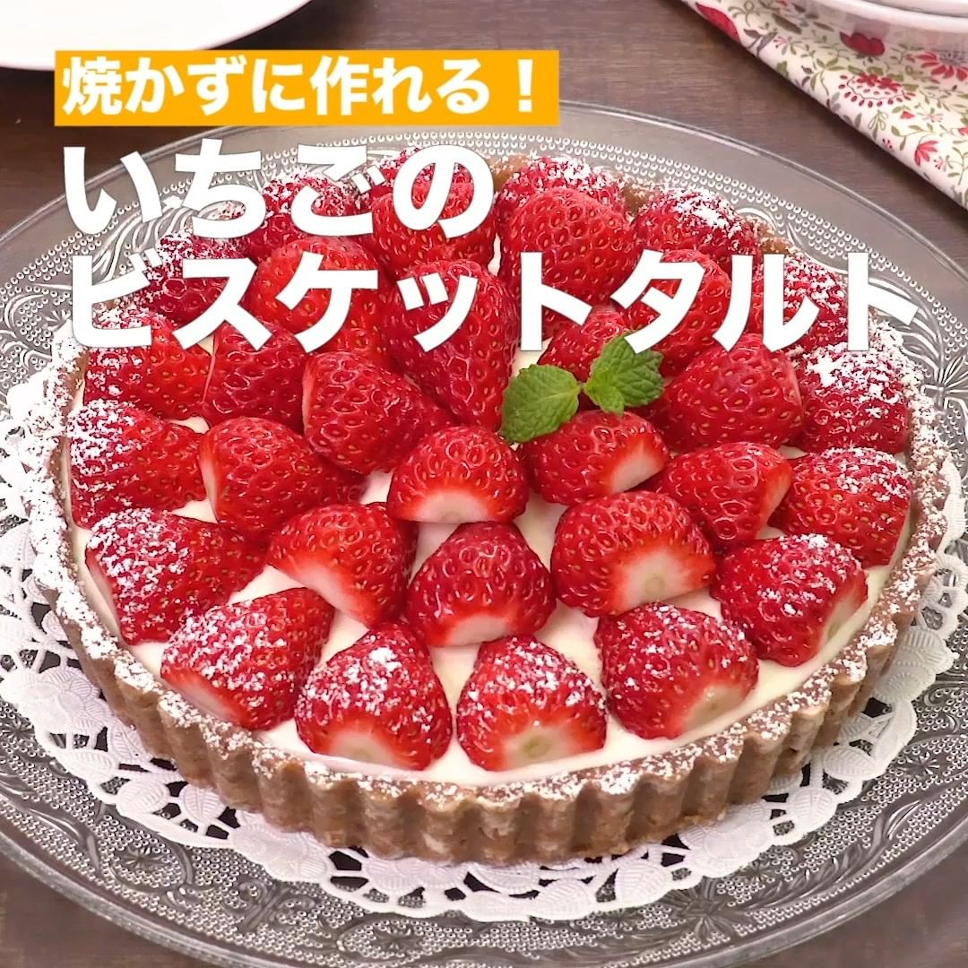 ①<焼かずに作れる!いちごのビスケットタルト>