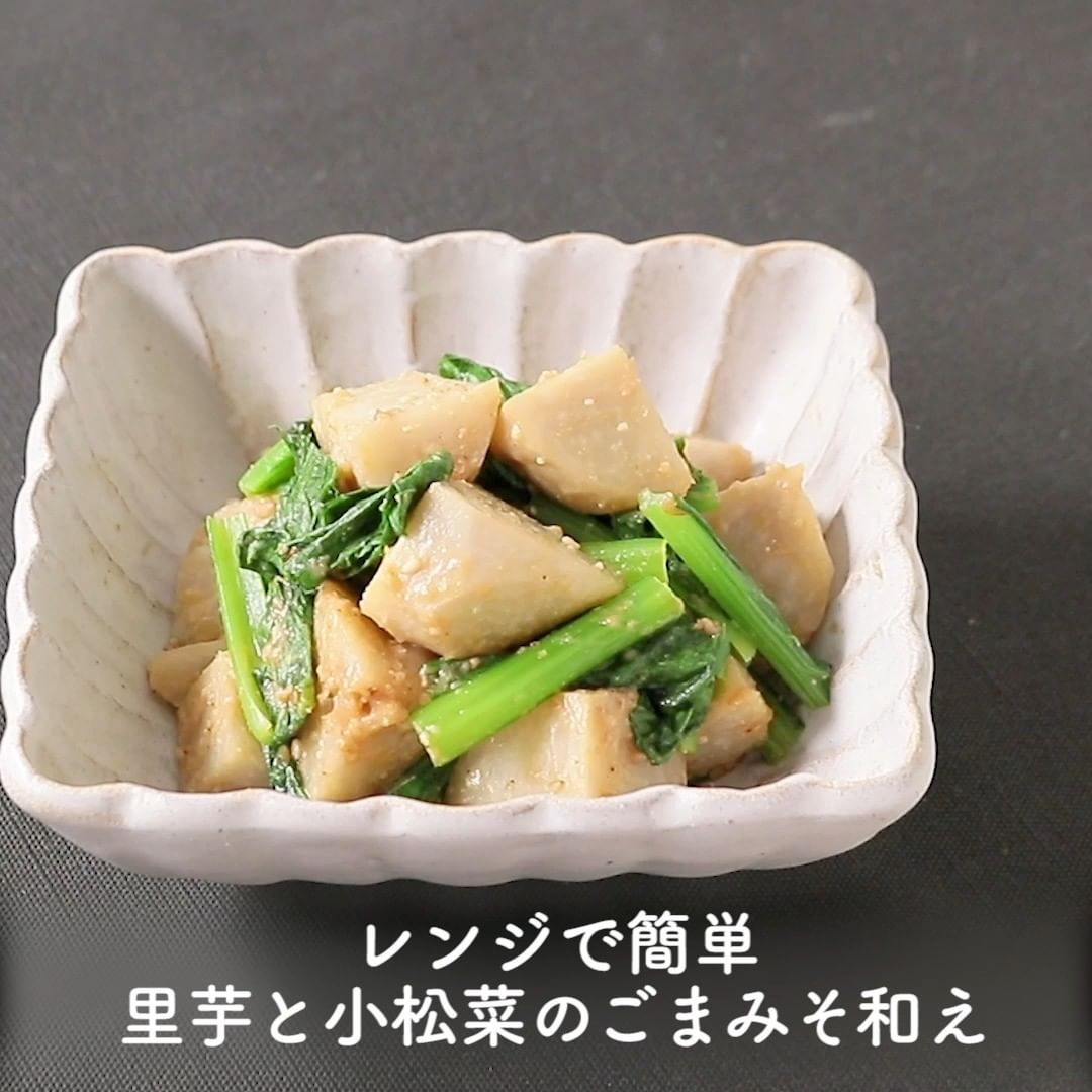 ②レンジで簡単 里芋と小松菜のごまみそ和え