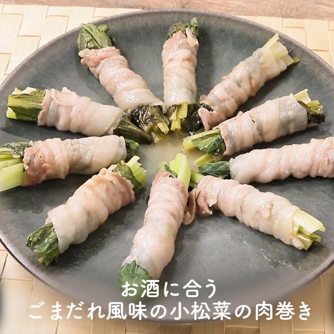 ④お酒に合う ごまだれ風味の小松菜の肉巻き