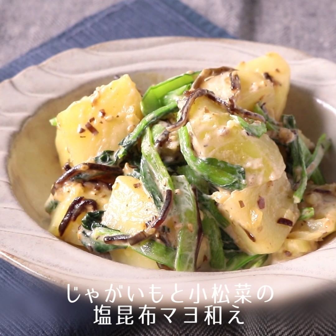 ③じゃがいもと小松菜の塩昆布マヨ和え