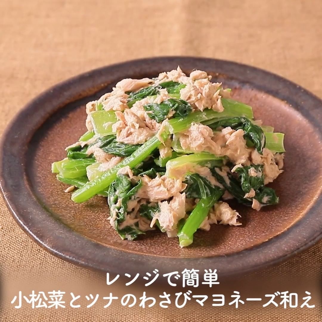 ①レンジで簡単 小松菜とツナのわさびマヨネーズ和え