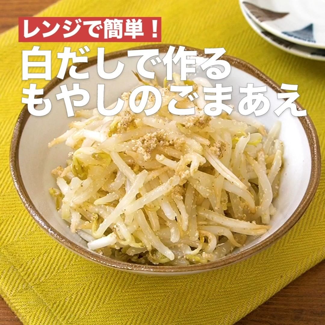 白だしを使って作るごまあえです。白だしはひとつで味が調いやすく、ごまあえが簡単に作れます!もやしは切る必要がないのでレンジで加熱して調味料とあえるだけ♪簡単、時短なあえ物です。白だしは製品によって塩分量に違いがあります。詳しい内容は注意点をご確認ください。