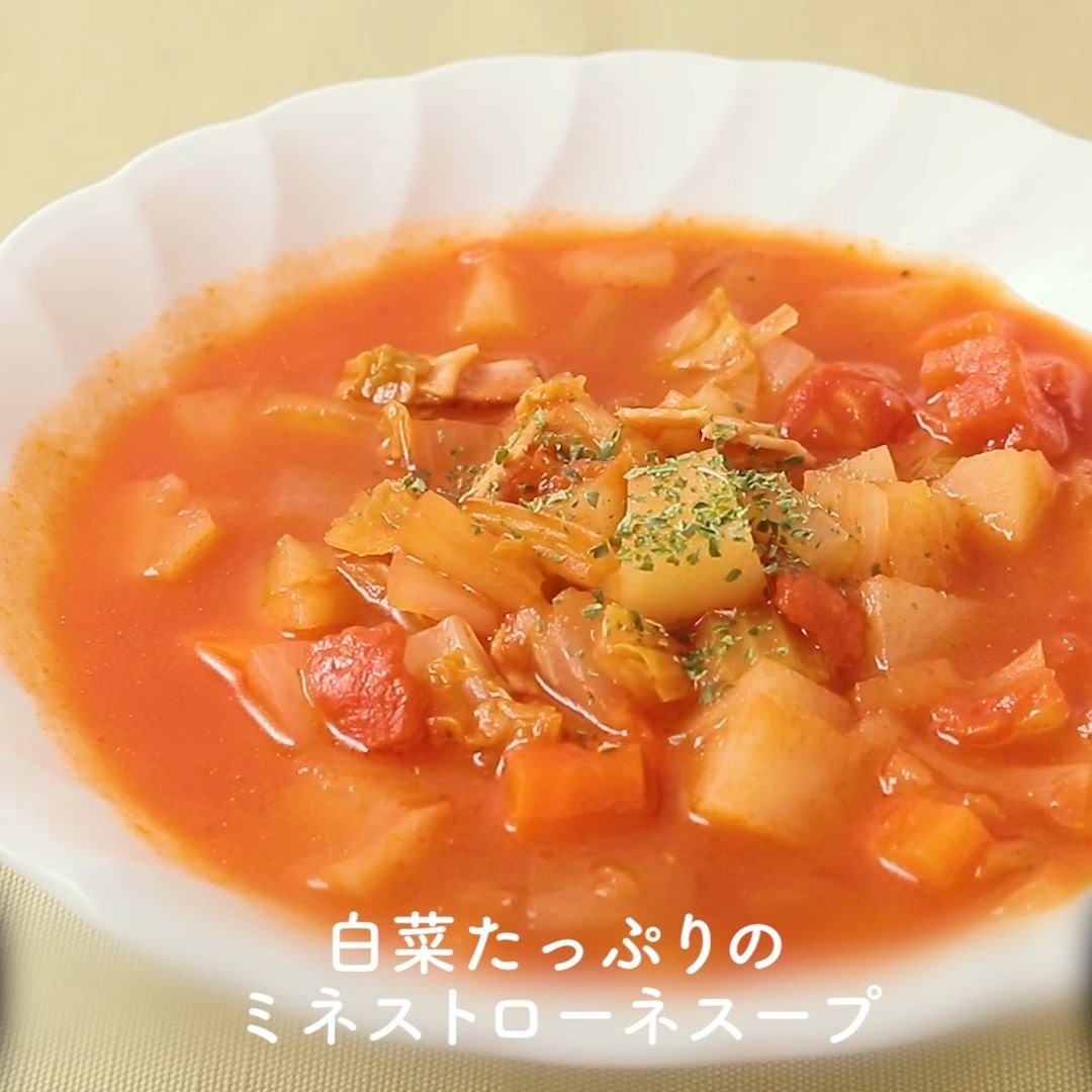 ②白菜たっぷりのミネストローネスープ