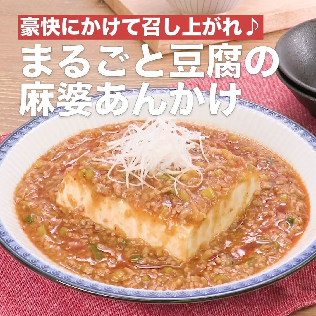 ⑥<豪快にかけて召し上がれ♪まるごと豆腐の麻婆あんかけ>
