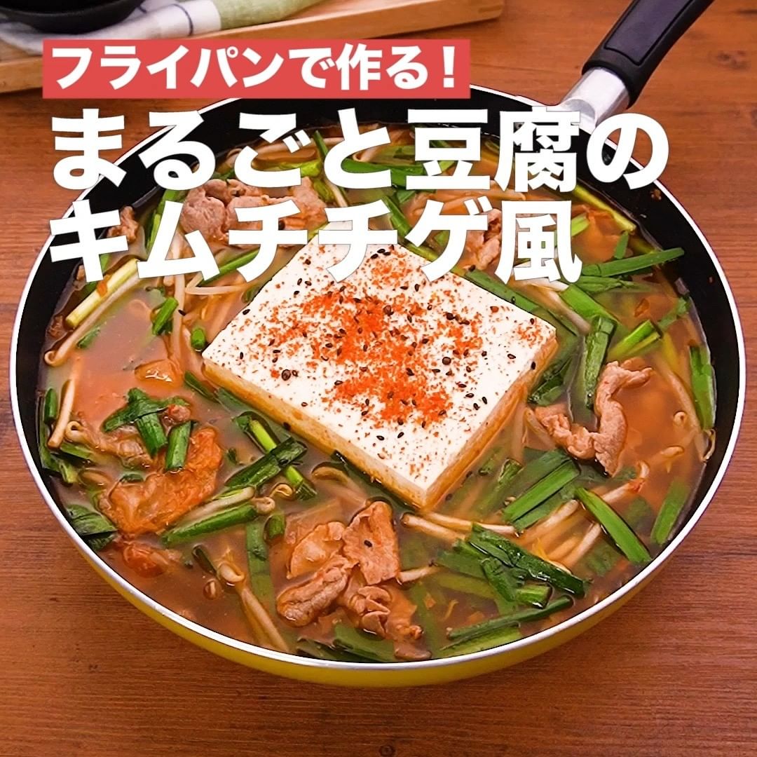 ②<フライパンで作る!まるごと豆腐のキムチチゲ風>