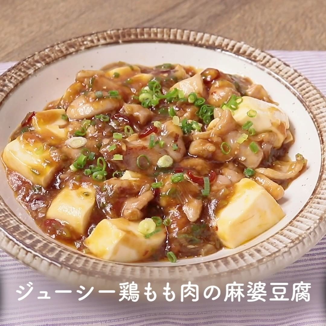 ①ジューシー鶏もも肉の麻婆豆腐