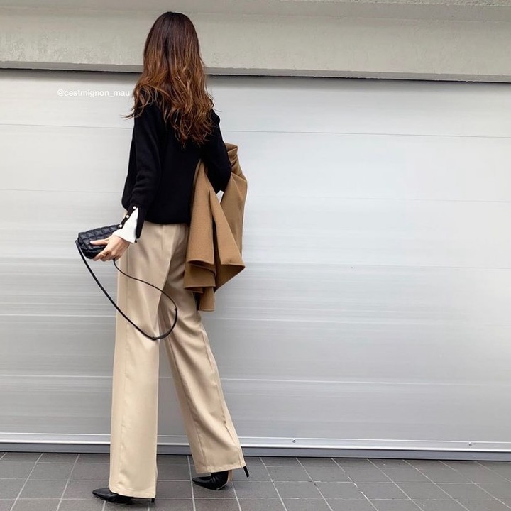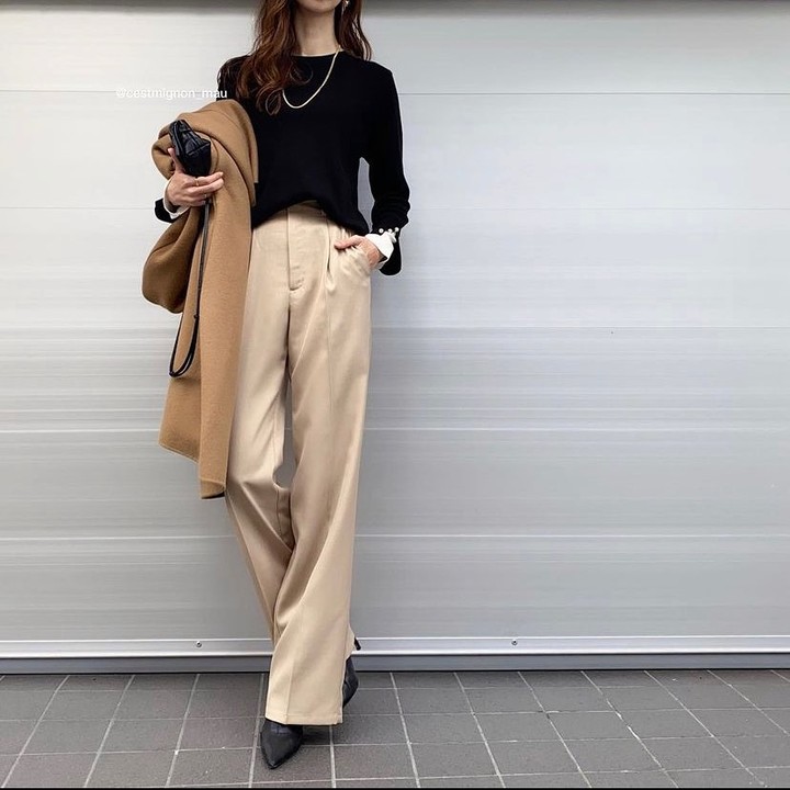 腰周りをカバーするウエストタックとダーツが、すっきり見せを叶えるポイントです!