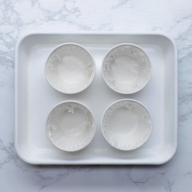 3. Put a paper cup in 4 heat-resistant containers such as cocotte. Add 1 and 2 in halfway up the containers. Sprinkle the remaining sweet natto on the matcha flavor and sprinkle the remaining chocolate chips on the cocoa flavor.