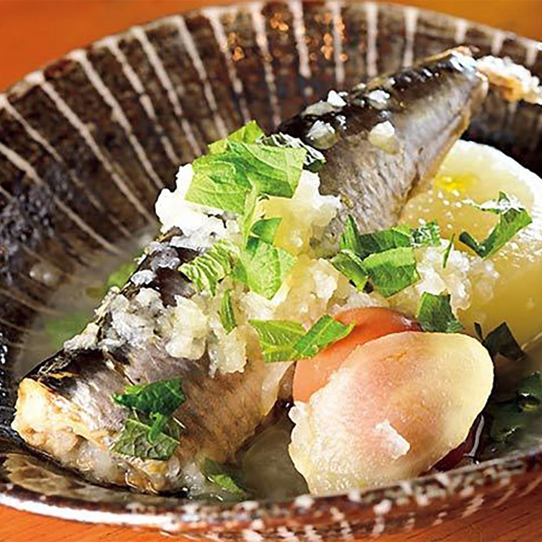 そのギャップは料理にも。たとえば、「鰯の梅煮」にはアップルビネガーが隠し味に。