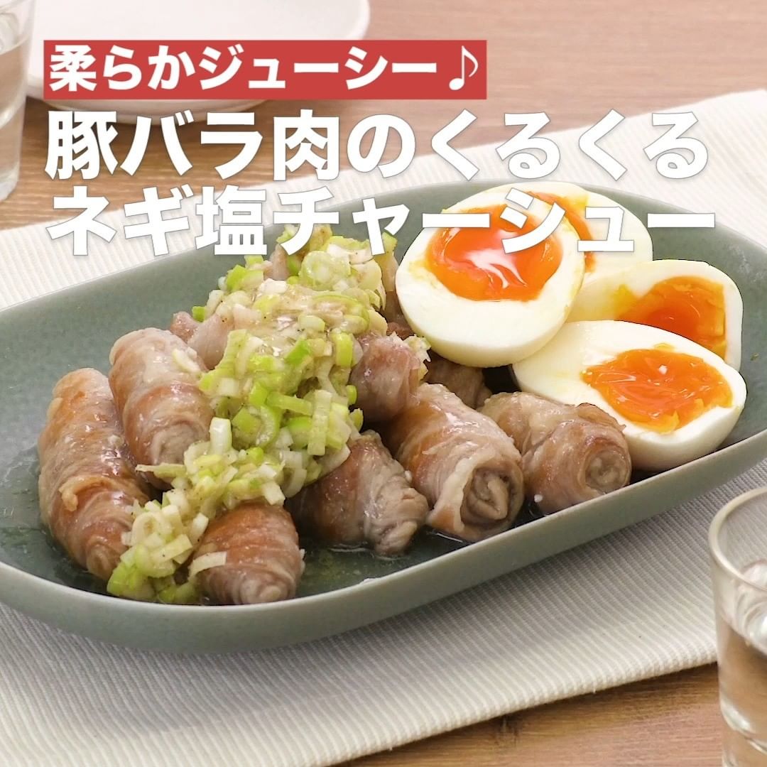 ⑤<柔らかジューシー♪豚バラ肉のくるくるネギ塩チャーシュー>