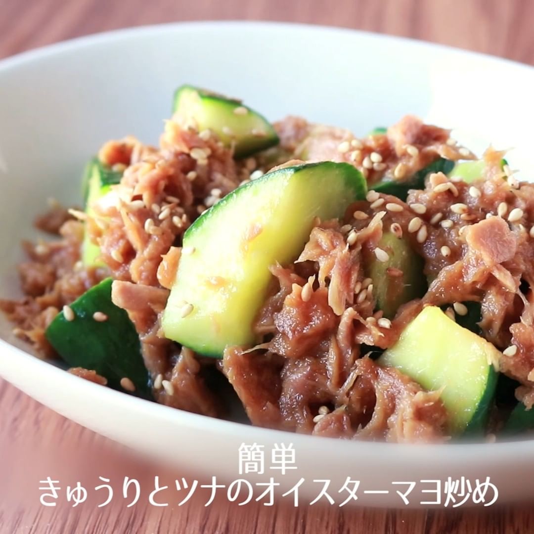 ③簡単 きゅうりとツナのオイスターマヨ炒め