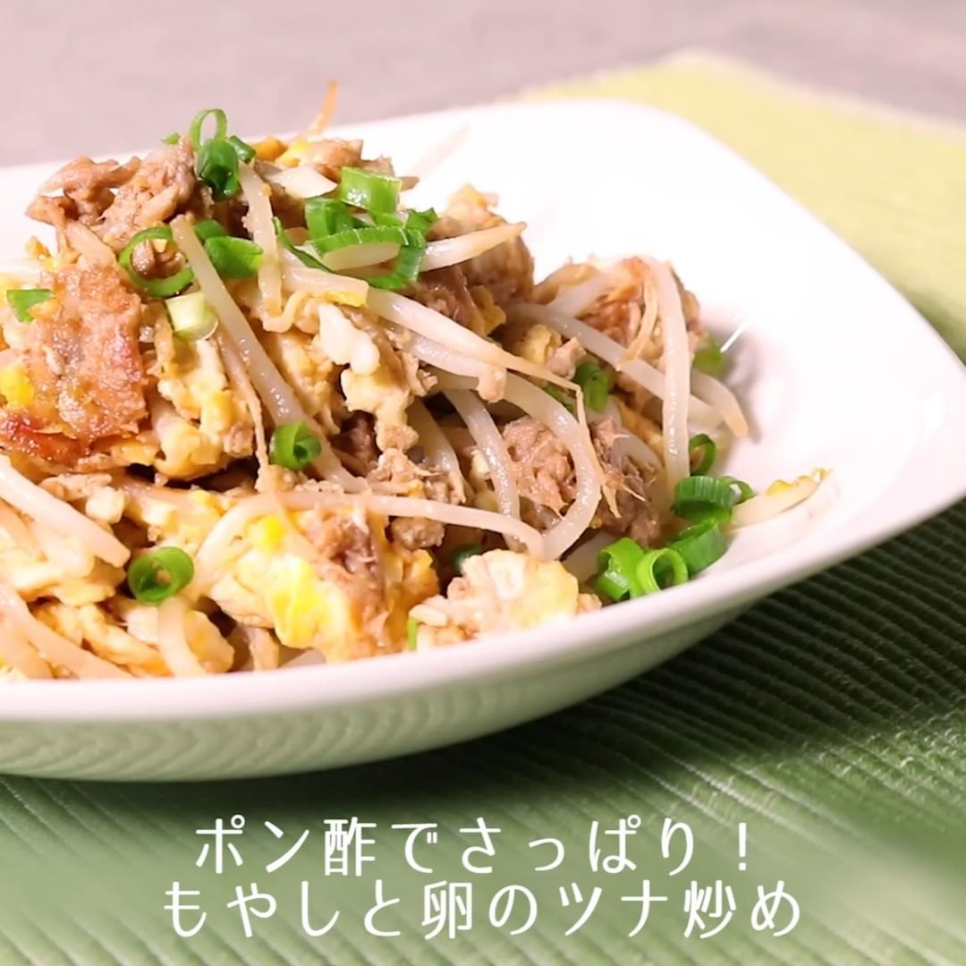 ②ポン酢でさっぱり!もやしと卵のツナ炒め