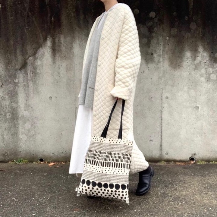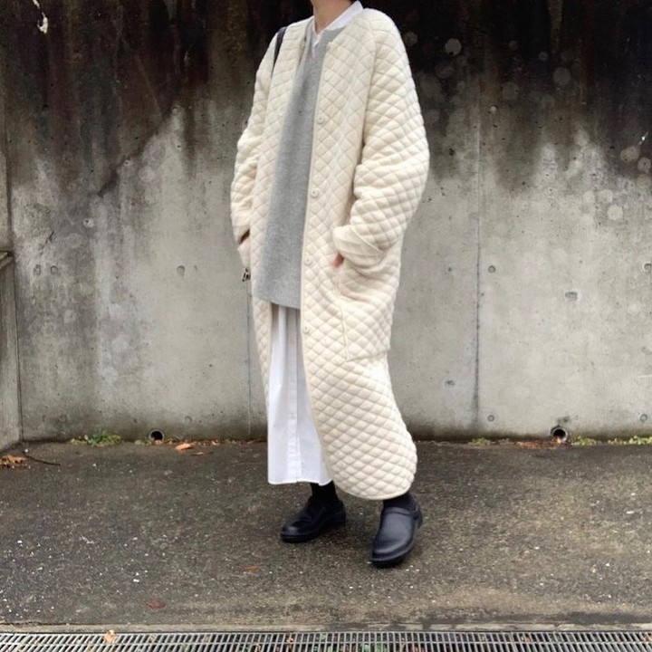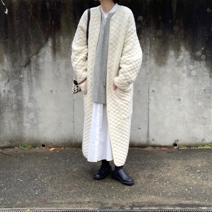 ヘム部分をギャザーで切り替えたシャツワンピース。
