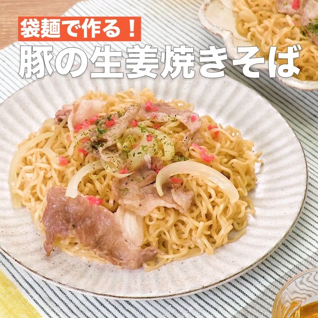 ④<袋麺で作る!豚の生姜焼きそば>