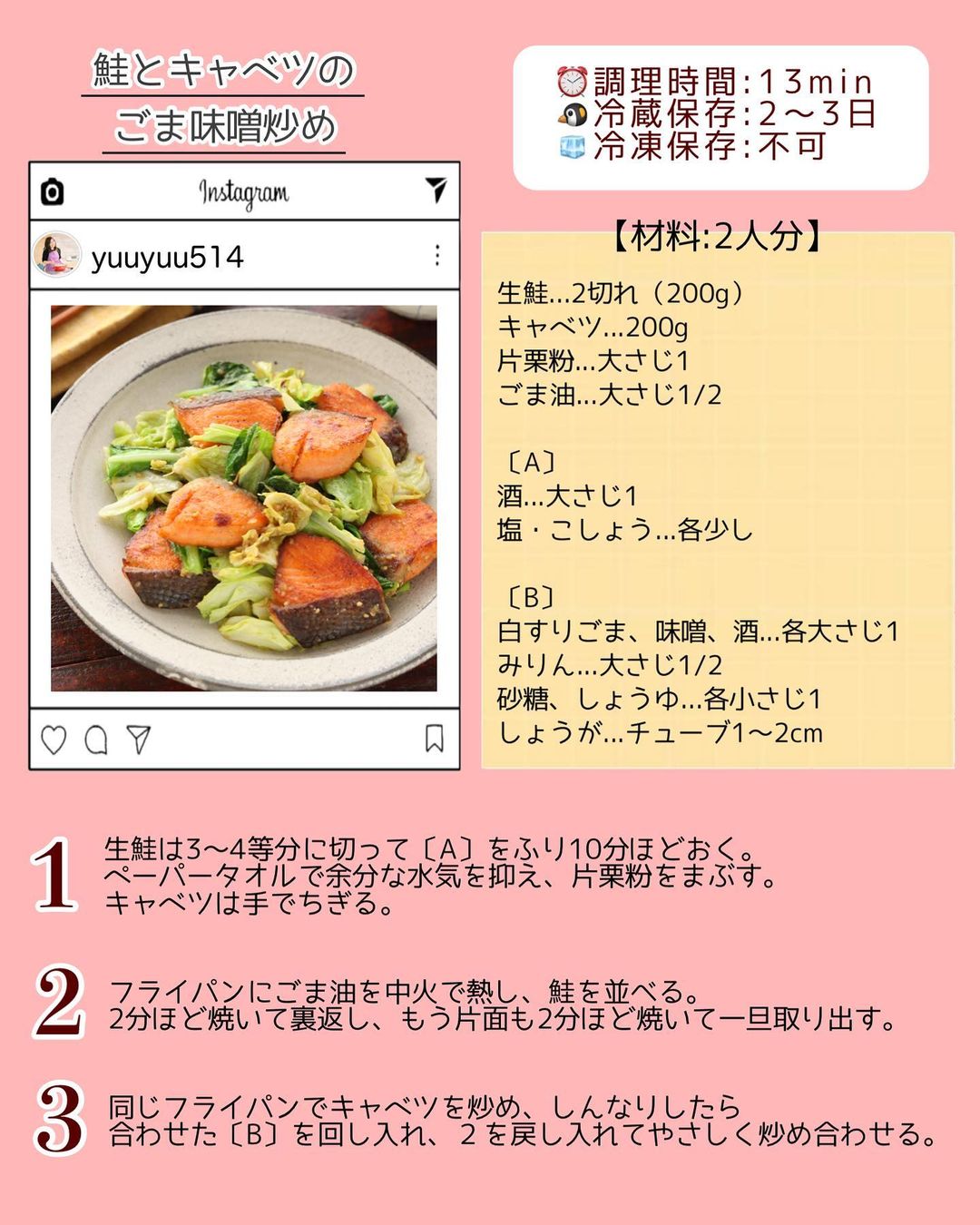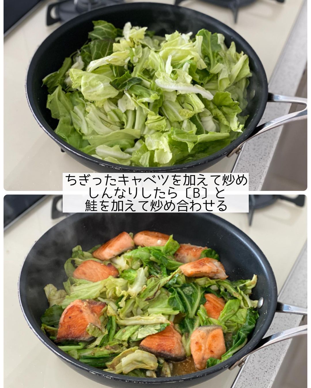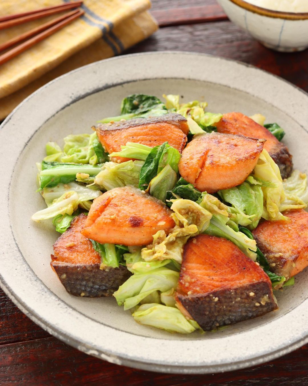 𓎩 #鮭とキャベツのごま味噌炒め