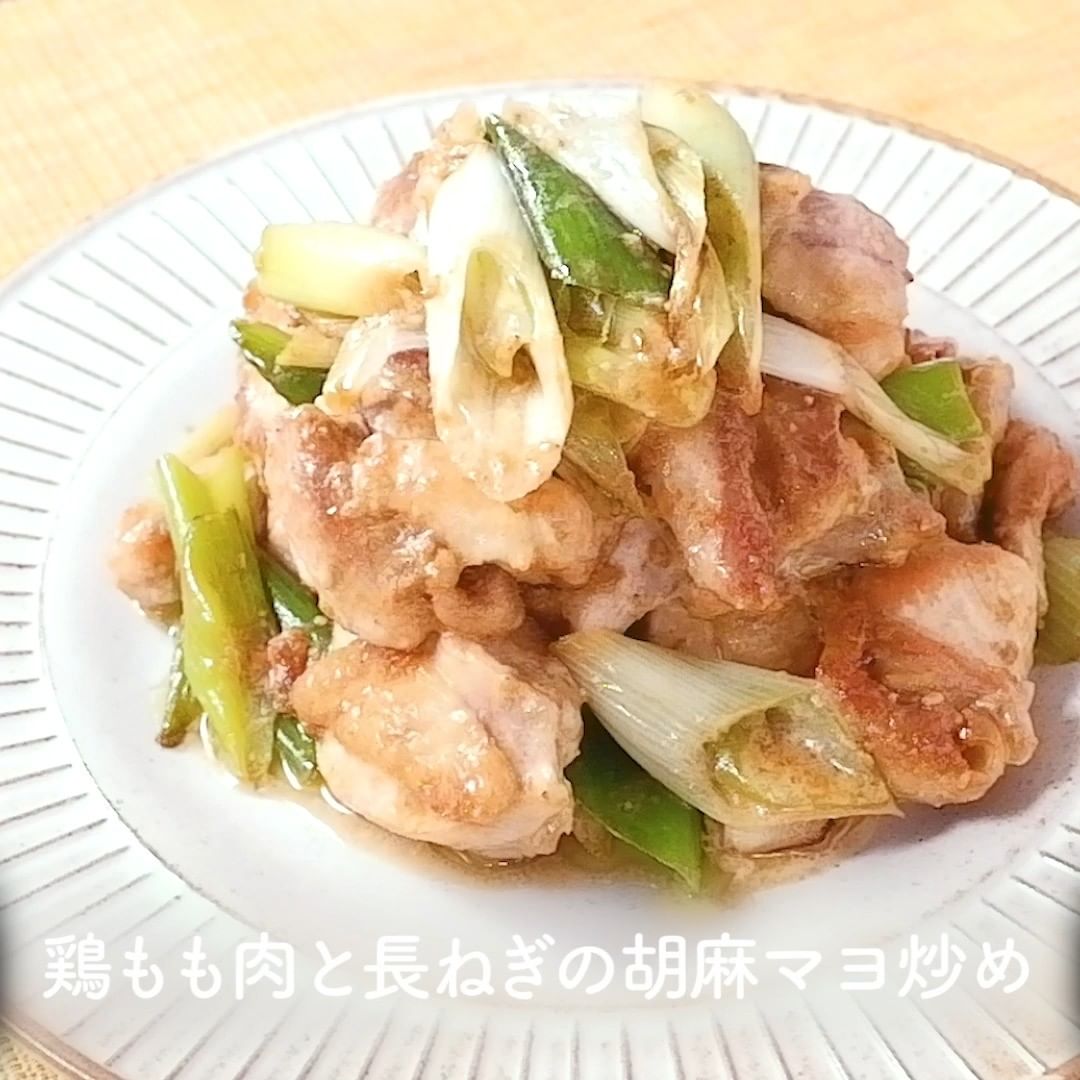 ④鶏もも肉と長ねぎの胡麻マヨ炒め