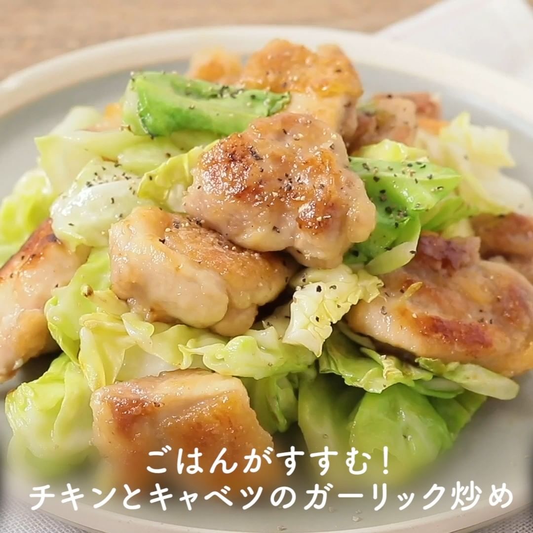 ①ごはんがすすむ!チキンとキャベツのガーリック炒め