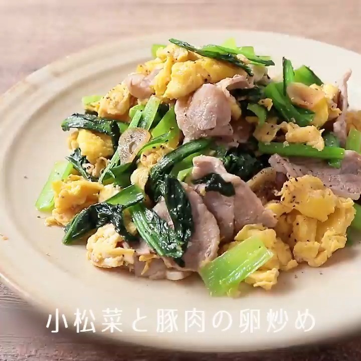 ⑤小松菜と豚肉の卵炒め