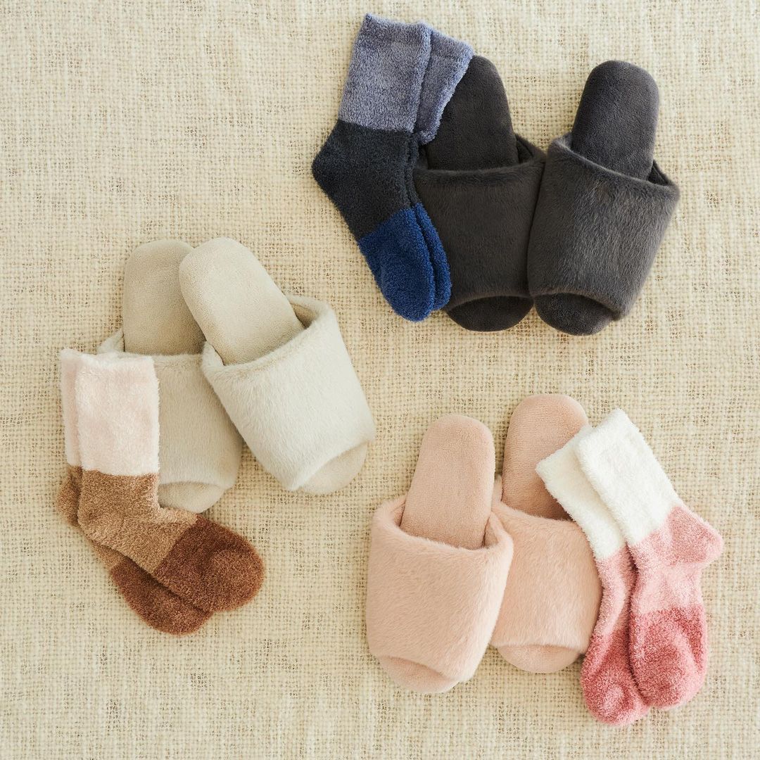 It’s getting chilly out there! Keep your toes cozy and warm with our Furry Fleece Room Shoes and Soft and Fluffy HEATTECH Socks.