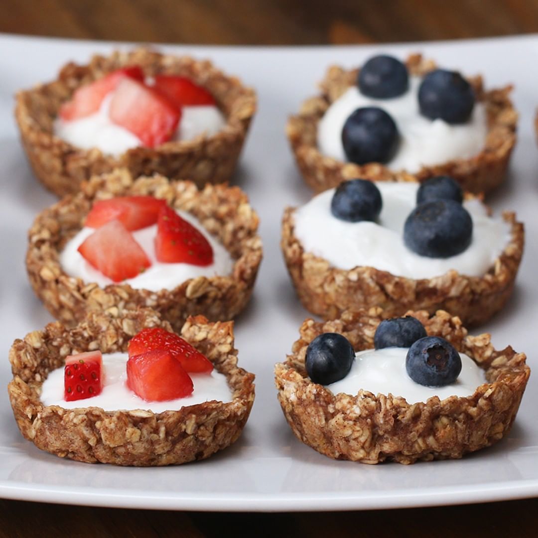 【オートミールで簡単!】ひとくちヨーグルトタルト🍓🫐 / Granola Yogurt Mini Tarts