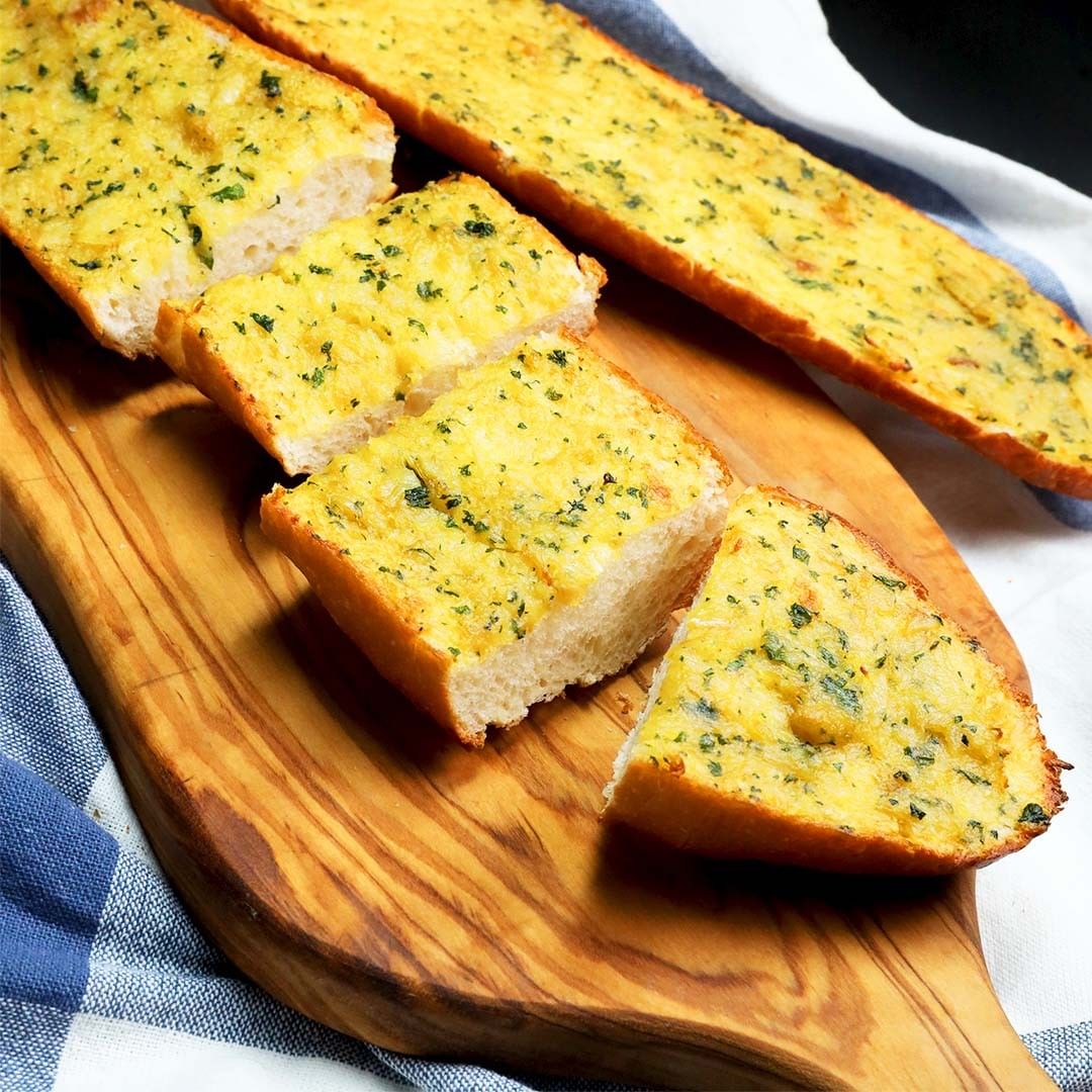 3. Mix butter, parsley, and (2) in a bowl. Spread onto the French baguette.