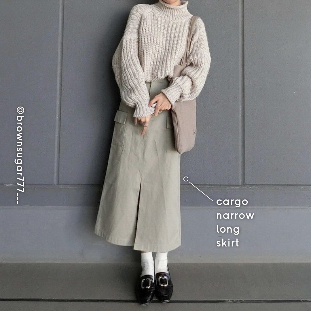 大人のカジュアルスタイルに適任なカーゴスカート。